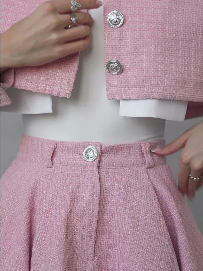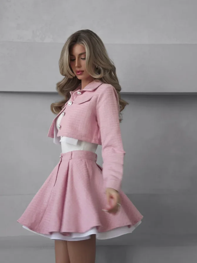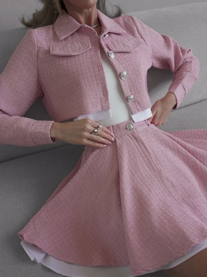 Wholesale High Quality Custom Women's Two Piece Suit Set Elegant Short Jacket Pleated Skirt Button Decoration for Casual Wear